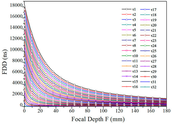 The focusing delay time τj(F, βj) of channel j can be calculated with the formula shown in Equation (1).
