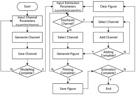 Figure 3 shows the flow chart of using the simulation platform in this paper. When conducting a simulation, first, users should enter proper channel parameters and click ‘Generate Channel’ button repeatedly until enough channels are saved in the list. Then, parameters of OFDM channel estimation and UWA channels need to be configured. For deterministic channels, a UWA channel needs to be selected from the channel list. While simulating with stochastic channels, users should choose a group of channels by clicking ‘Add Channel’ button. After that, curves of BER and MSE will be plotted by clicking the ‘Generate Figure’ button. Repeating the progress of modifying parameters and plotting curve, result of performance comparison will be produced. Eventually, the simulation figures can be saved in high-resolution by clicking ‘Save Figure’ button.