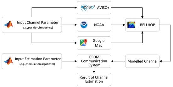 - The modelling of UWA channels is combined with OFDM channel estimation. To study the modelling of UWA channels, a great number of researchers focus on analysing the transmission loss, CIR, and ray tracing, which show the transmission characteristic of UWA channels. Furthermore, bit error rate (BER) and mean square error (MSE) are key parameters in judging the performance of channel estimation. Hence the normalized CIRs of channels are computed in UWA channel modelling part and the comparison of performance of BER and MSE is made in the OFDM channel estimation part. Based on this framework, users can analyse the estimation performance of different modelling channels, modulation schemes, and estimation algorithms to assess the implementation scheme of the UWA communication device.