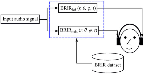 Headphone-based representation of virtual acoustic environments (VAEs) is becoming more and more important due to the growing market of mobile devices, virtual and augmented reality (VR/AR) applications, high-definition television (HDTV), etc. [1]. As shown in Figure 1, the traditional way to synthesize a virtual sound source presented over headphones is by convolving a dry audio signal with a pair of binaural room impulse responses (BRIRs, the time domain representation of binaural room transfer functions (BRTFs)), which can be expressed as [2]: