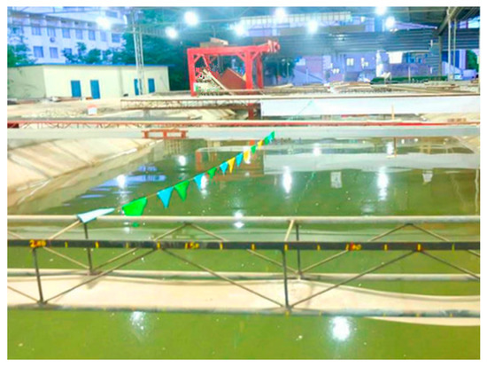 Simulation of the reach of the river section indicates that the mileage of the navigation channel is 336 km, and the channel length is 330 km. The model is produced using the section method and generalized to the bottom terrain. As shown in Figure 1, the model was built according to the drawing before the test. The specific size and the designated spots are shown in Figure 2.