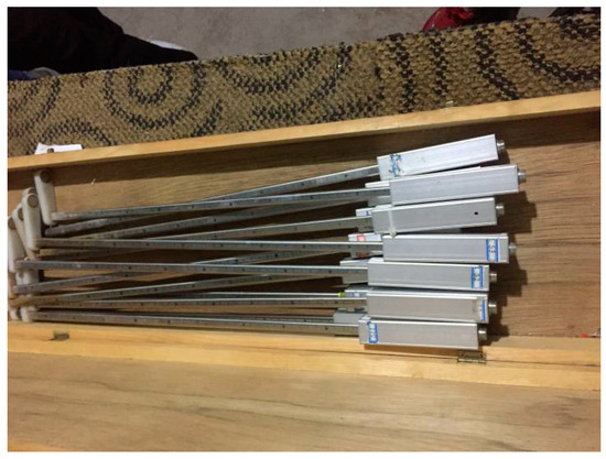 The volume and weight of the landslide body in the test are small, but the landslide body has a high center of gravity. The landslide slope and slope variation are relatively large. Observations, photographing, and other functions are also performed on the carriage for safety. High requirements are set for operation convenience. Model 20 channel steel is used to construct the shelves. The carriage is 2 m high, 2 m wide, and 3 m long. The layout of the sliding frame is shown in Figure 4.