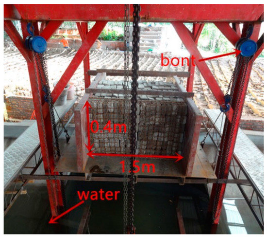 The landslide body is a slider, and cement, sand, and stones are used as raw materials. Blocks are also utilized in accordance with statistics. The blocks that have been created are stacked and integrated according to the parameter table of each scheme block to simulate the crack development, dispersion degree, and block composition of the sliding body. The sliding blocks are used according to the actual situation of the landslide, and are composed of different sizes, as shown in Figure 3.