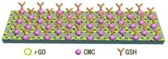 Schematic diagram of rGO/carboxymethyl cellulose (CMC)/GSH/-functionalized glassy-carbon electrode (GCE).