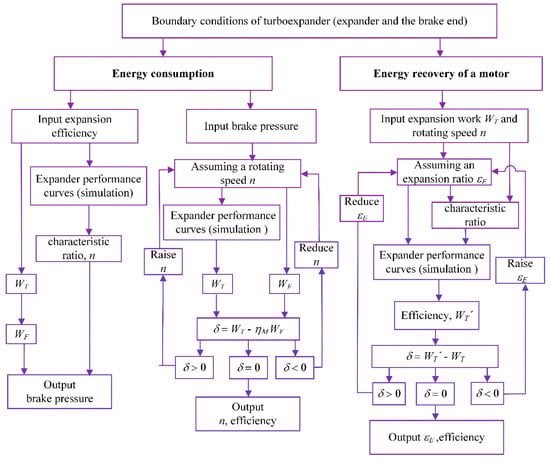 As a critical component of the turbo-based refrigerator, matching performances of the turboexpander with a blower were researched and the mathematical model was built in References [,]. The working power and rotating speed are two equilibrium parameters between the expander and blower. The relations between the expander and blower could be presented as the following [,]: