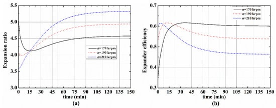 Dynamic expansion characteristics with a motor: (a) Expansion ratio; (b) expander efficiency.