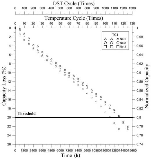 - Lin, Y.C.; Chung, K.J.; Hsiao, C.C. A Novel Double Dynamic Stress Accelerated Degradation Test to Evaluate Power Fade of Batteries for Electric Vehicles. In Intelligent Technologies and Engineering Systems; Lecture Notes of Electrical Engineering; Springer: New York, NY, USA, 2013; Volume 234, pp. 161–168. [Google Scholar]