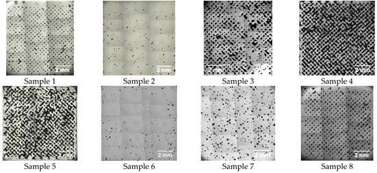 The relative density results using different methods including the Archimedes methods and image analysis were obtained, and were plotted into the curve of relation between relative density and energy density in Figure 2. Figure 3 presents the merged microscopies of the cross-section of AlSi10Mg SLMed samples. According to the merged microscopies of the cross-section, the relative densities of the samples were calculated with ImageJ software.