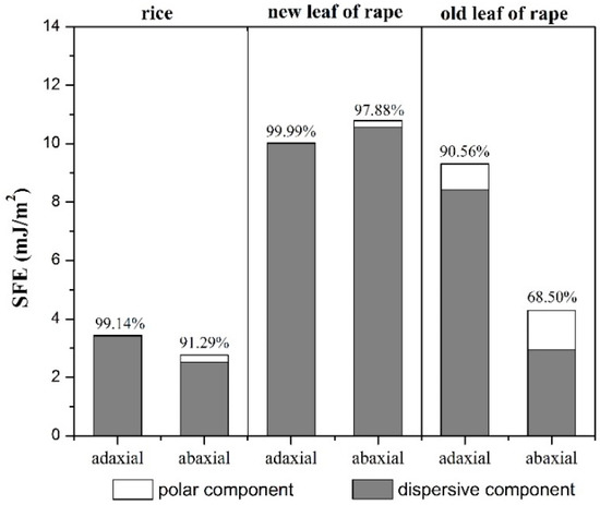 3.1. The Comparison of Surface Free Energy on Rice and Rape Leaf