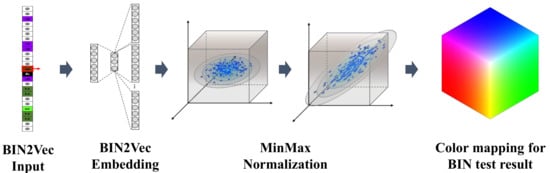 Bin code RGB color mapping framework based on Bin2Vec.