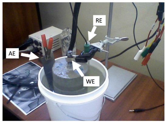 - Deus, J.M.; Díaz, B.; Freire, L.; Nóvoa, X.R. The electrochemical behaviour of steel rebars in concrete: An Electrochemical Impedance Spectroscopy study of the effect of temperature. Electrochim. Acta 2014, 131, 106–115. [Google Scholar] [CrossRef]