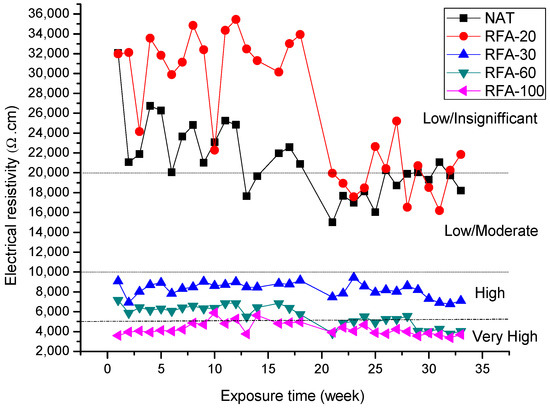 - The use of RA introduces more interfaces in concrete, which accelerates the steel corrosion process because the porosity increases and the electrical resistivity decreases.