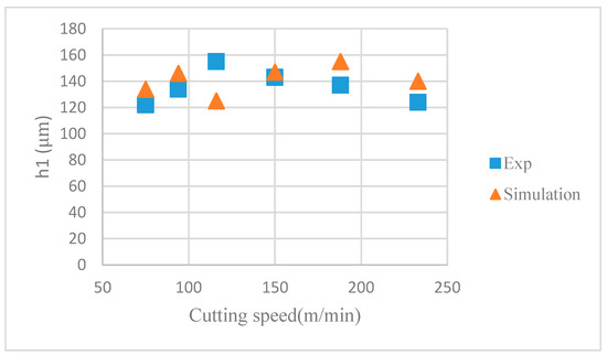 Maximum segmentation height (h1) under different cutting speeds.