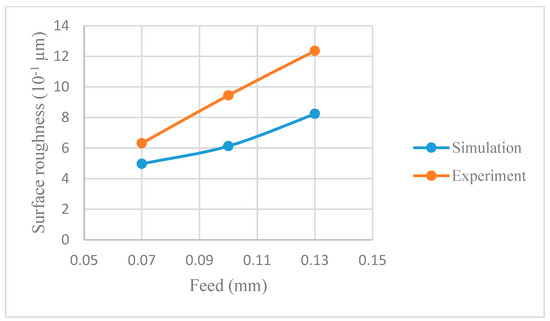 - This work proves that the effects of cutting parameters on surface roughness can be investigated through simulation instead of real experiments for cutting Ti–6AL–4V. This avoids the laborious experimental process and substantially reduces work time and cost.