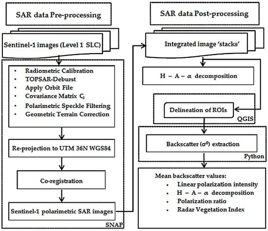 Flowchart of Sentinel-1 dual polarization SAR data processing.