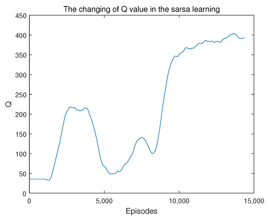 Figure 7 illustrates how the Q -value changes with the increase of the episodes during the policy learning process. The figure is drawn with data filtered by a window of 1000 episodes. From Figure 7, it can be seen that the Q-value increases as the number of episodes increases, and becomes stable after around 10,000 episodes.