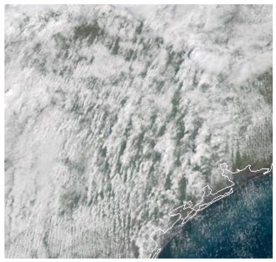 For day-ahead GHI forecasting, both numerical weather prediction (NWP) [] and satellite imagery provide effective tools for forecasting irradiance. The National Center for Environmental Prediction (NCEP), a part of NOAA, runs two versions of the Rapid Refresh (RAP) numerical weather model to predict environmental data. The first version generates weather data on a 13-km (8-mile) resolution horizontal grid and the second, the High-Resolution Rapid Refresh (HRRR), generates data on a 3-km (2-mile) grid. RAP forecasts use multiple data sources: commercial aircraft weather data, balloon data, radar data, surface observations, and satellite data to generate forecasts with hourly resolution in time and forecast lengths of 18 hours. For further details, consult the RAP website []. RAP data are available for download through the National Model Archive and Distribution System (NOMADS). Several benefits accrue from using NWP for irradiance forecasting: NOAA incurs much of the computational burden and these models incorporate first-principles physics such as the Navier-Stokes equations, thereby allowing for the dynamic formation of clouds. Satellite technology is advancing rapidly with GOES-16 (Geostationary Operational Environmental Satellite) pictures being updated every 5 min with maximum resolution of 5000 by 3000 pixels. Figure 1 shows such an image cropped to the central Texas region. The temporal sampling of the data is still insufficient to support optical flow predictions 15-min ahead. Continued improvements in GOES-R (geostationary satellite with high spatial and temporal resolution) may well make the satellite approach to minutes-ahead irradiance prediction more attractive in the future [,,,]. Statistical methods based on historical time-series data and climatology are also useful for day-ahead PV forecasting.
