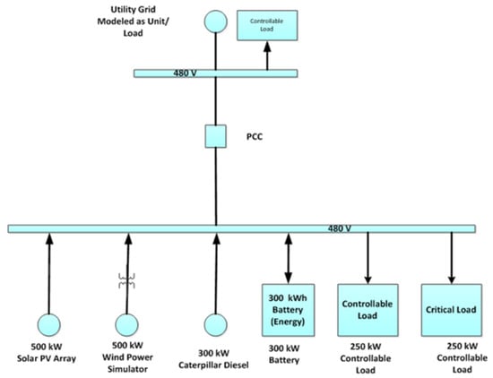 In a macrogrid extending over hundreds of square kilometers, integrating a mix of generation conventional power plants, solar, and wind, and functioning as part of a larger interconnect such as ERCOT, there is an inherent inertia that works on the side of the utility. In microgrids, however, this inertia is lacking, and the control problem becomes much more difficult to solve when in islanded mode [,]. There are also different temporal scales involved. Optimal day-ahead scheduling and control of a microgrid is a distinct problem from hour-ahead control to ensure frequency and voltage do not vary outside prescribed limits. Using equipment such as the OP4500 RT-LAB/RCP/HIL real-time power grid digital simulator by Opal RT, we hope to use Hardware-in-the-Loop equipment to analyze the microgrid at JBSA. PMU measurements also need to be incorporated.