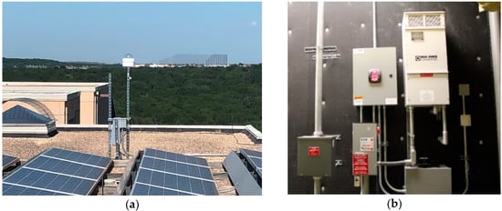 (a) PV panels and SkyImager at UTSA; (b) Inverters & combiners, Engineering Bldg.