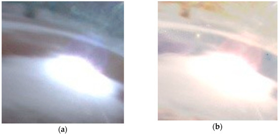 Sub-images of circumsolar region: (a) low exposure and (b) raw fused.
