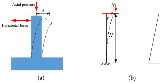 Based on the practical stress condition of the frame column, the frame column can be simplified as a cantilever which bears axial pressure and horizontal force, as shown in Figure 10. Meanwhile, we can assume that the section curvature of the SRC column is linearly distributed along the column height. When the root section of the frame column hass yielded, the horizontal yield displacement of the top of the column can be expressed as: