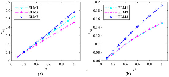 Substituting Equation (42) and Equation (34) into Equation (15), the equivalent damping ratio is obtained: