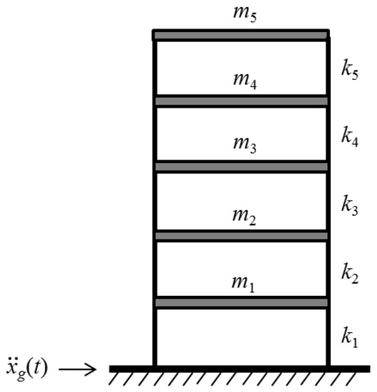 ; ; ; and (i = 1, …, 5; k = 1, …, s) denote the displacement and velocity of the i-th floor at the k-th sampling point, respectively; the subscript ‘s’ denotes the number of sample points as defined before.