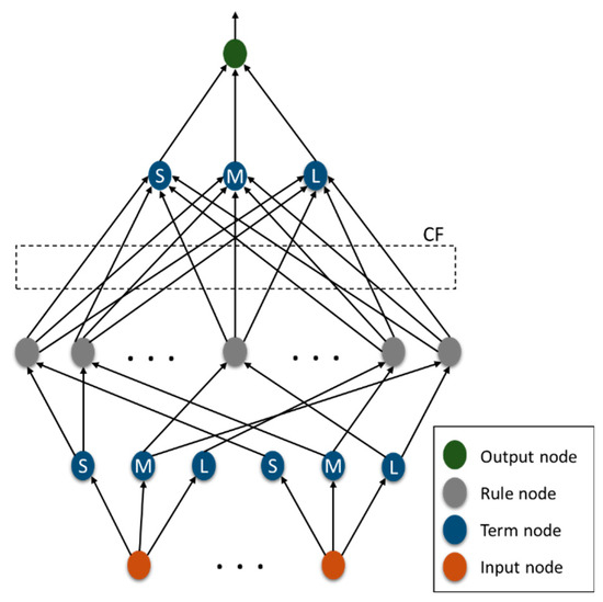 The nodes in the first layer represent the inputs of the method. The nodes in the second and fourth layer, act as the Membership Functions (MF) to express the input-output fuzzy linguistic variables. The fuzzy sets in these layers are presented as large (L), medium (M), and small (S). However, in some cases, this distribution can be more specific and be shown as large positive (LP), small positive (SP), zero (ZE), small negative (SN), and large negative (LN). The third layer includes the rule nodes, every node in this layer is a fuzzy rule. The connection weights between the third and fourth layer represent certainty factors (CFs) of the associated rules, i.e., each rule is activated to a certain degree controlled by the weight values. In the end, the nodes in the fifth layer present the outputs of the system.