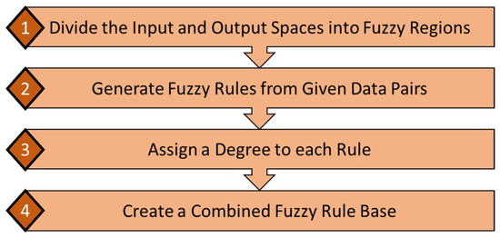 The Wang and Mendel’s method has been known as a simple method with an acceptable performance [32]. The implementation of fuzzy rules in this method is based on four steps which are presented in Figure 3.