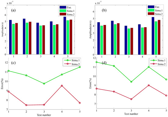 As seen in Figure 10, the simulation results of cutting vibration considering impact vibration (Simu.2) are more precise. The simulation error of cutting vibration in the x direction can be reduced by 33.13% in maximum (Test 5). The simulation error of cutting vibration in the y direction can be reduced by 25.02% at the maximum (Test 2).