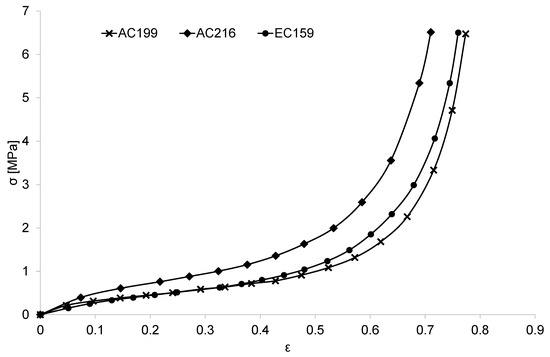 Cork agglomerates and EPS foam engineering stress-strain curves.