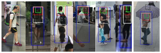 Some efforts have been made to handle occlusions or small objects during pedestrian detection. Repulsion loss was proposed in [11] to improve pedestrian detection performance by utilizing the repulsion of the surrounding pedestrians in the crowd. Ref. [12] employs an attention mechanism across channels to handle various occlusions. Ref. [13] computes an occlusion-aware detection score based on the part detection confidence scores. In order to handle small objects, Ref. [10] utilizes feature pyramids to enhance the representation of various objects across a large range of scales. Further, Feature Pyramid Networks [14] builds high-level semantic feature maps from all scales to solve the problem of detecting small objects that cannot be well captured by the large-scale feature map. Ref. [15] merges detection results from a set of divided views to improve the detection performance for small objects. In addition, Refs. [16,17] utilize the relations between objects, and [18,19,20] utilize a cascaded network to improve detection performance.