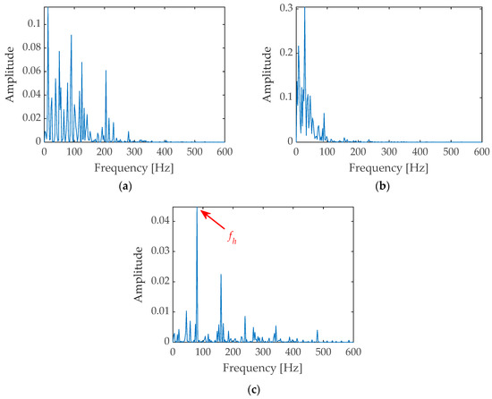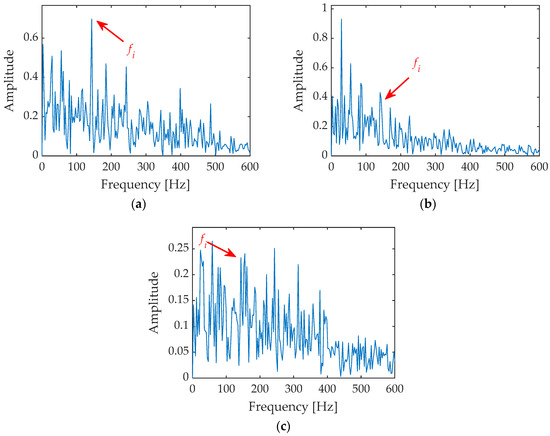 Envelope spectrum with band-pass filtering: (a) Filtered with ; (b) Filtered with ; (c) Filtered with .