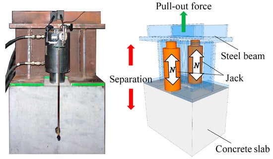 - Mirza, O.; Uy, B. Effects of the combination of axial and shear loading on the behaviour of headed stud steel anchors. Eng. Struct. 2010, 32, 93–105. [Google Scholar] [CrossRef]