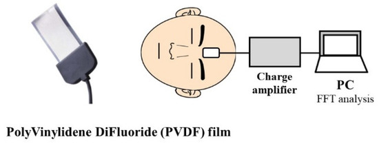 The setup for measuring skull vibrations using PolyVinylidene DiFluoride film.