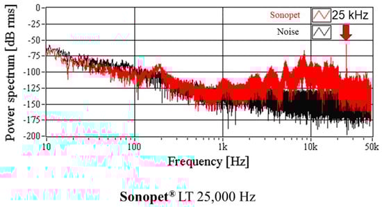 Figure 11 shows the power spectrum produced by the Sonopet® at 25 kHz in LT-mode versus background noise for the purpose of reference.