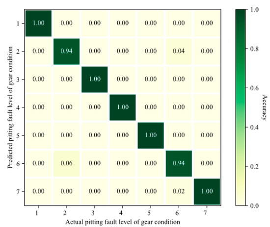 Gear pitting fault diagnosis accuracy for each fault condition.
