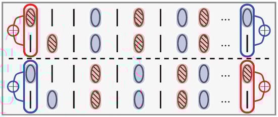 where the sign ± descends from the pinning value of the charge field, also reported in first column of Table 1. More precisely, one of the two degenerate states has a left-edge charge equal to and a right-edge charge equal to , whereas the other has the opposite arrangement. This is qualitatively reproduced in the cartoon shown in Figure 1.