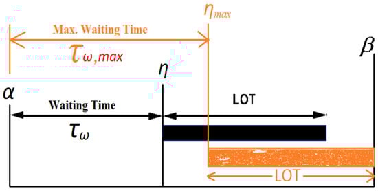 Therefore, the range of waiting time can be to , as shown in Figure 3.