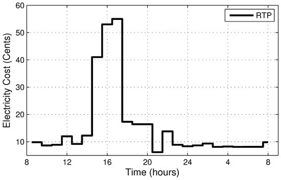 Different pricing signals were available. We used the day-ahead real time pricing (RTP) signal in our simulations, as shown in Figure 5.