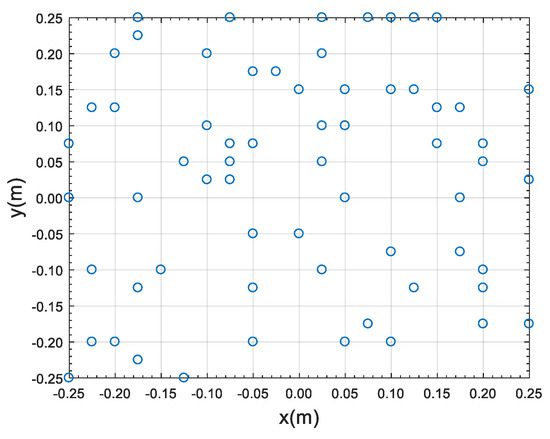 However, in most practical applications, the characteristics of the source are not clear [30,31]. It is difficult to choose a suitable basis or dictionary for the sparse representation of source distribution. To solve this problem, a new equivalent redundant dictionary, D = [ ϕ , U ] , is constructed by combining Equations (8) and (9). Therefore, the sound pressure on the reconstruction plane can be expressed as Equation (10):