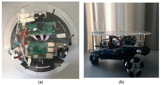 Omnidirectional robots. (a) Top view; (b) Side view.