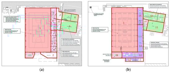 The retrofitting intervention and definition of thermal zones for the ground floor (a) and first floor (b).