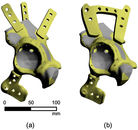 - Jardini, A.L.; Larosaemail, M.A.; Filho, R.M.; de Carvalho Zavaglia, C.A.; Bernardes, L.F.; Lambert, C.S.; Calderoni, D.R.; Kharmandayan, P. Cranial reconstruction: 3D biomodel and custom-built implant created using additive manufacturing. J. Craniomaxillofac. Surg. 2014, 42, 1877–1884. [Google Scholar] [CrossRef] [PubMed]