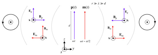 - Lakhtakia, A.; Varadan, V.K.; Varadan, V.V. Radiation by a point electric dipole embedded in a chiral sphere. J. Phys. D App. Phys. 1990, 23, 481–485. [Google Scholar] [CrossRef]