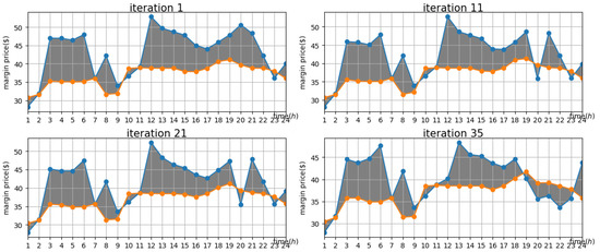 - If the margin unit in the last iteration step has been scheduled to generate at its full capacity, the margin unit will be changed, and there will be a gap of the . The (29) could also be positive because the if the generation of new margin unit is increased, is increased, and if the of the system is decreased, margin unit would be switched to that in the last iteration step, the is decreased.