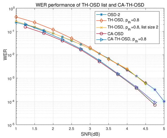 WER performance comparison between OSD-2, TH-OSD, TH-OSD list, CA-OSD, and CA-TH-OSD.
