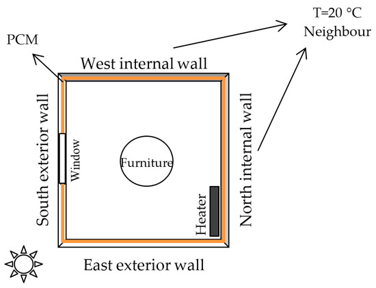 - Fateh, A.; Borelli, D.; Devia, F.; Weinläeder, H. Dynamic modelling of the solar radiation exposure effects on the thermal performance of a PCMs-integrated wall. Int. J. Heat Technol. 2017, 35, S123–S129. [Google Scholar] [CrossRef]