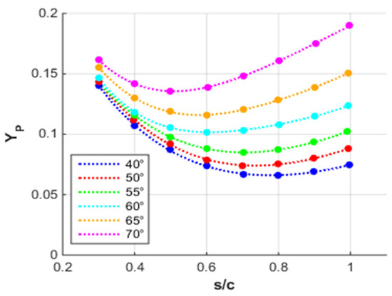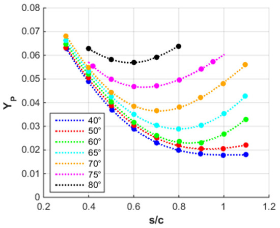 Cascade plots for profile loss where inlet angle = outlet angle.