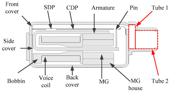 - Sun, W.; Hu, W. Lumped Element Multimode Modeling for a Simplified Balanced-Armature Receiver. In Proceedings of the 23rd International Congress on Sound and Vibration, Athens, Greece, 10–14 July 2016. [Google Scholar]